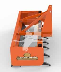 Land Pride’s BB2572 Series Fixed Bar Box Scrapers are ideal for building sites, feedlots, outdoor arenas, and on farm and ranch lanes or roadways. Two welded braces extending from front to rear of bucket plus welded gussets between the side panels and moldboard provide exceptional strength for keeping the Box Scraper square under heavy loads. Dirt rolls off of the roll-formed moldboard while scraping, creating less drag and you will get twice the wear on the cutting edge due to its reversibility.